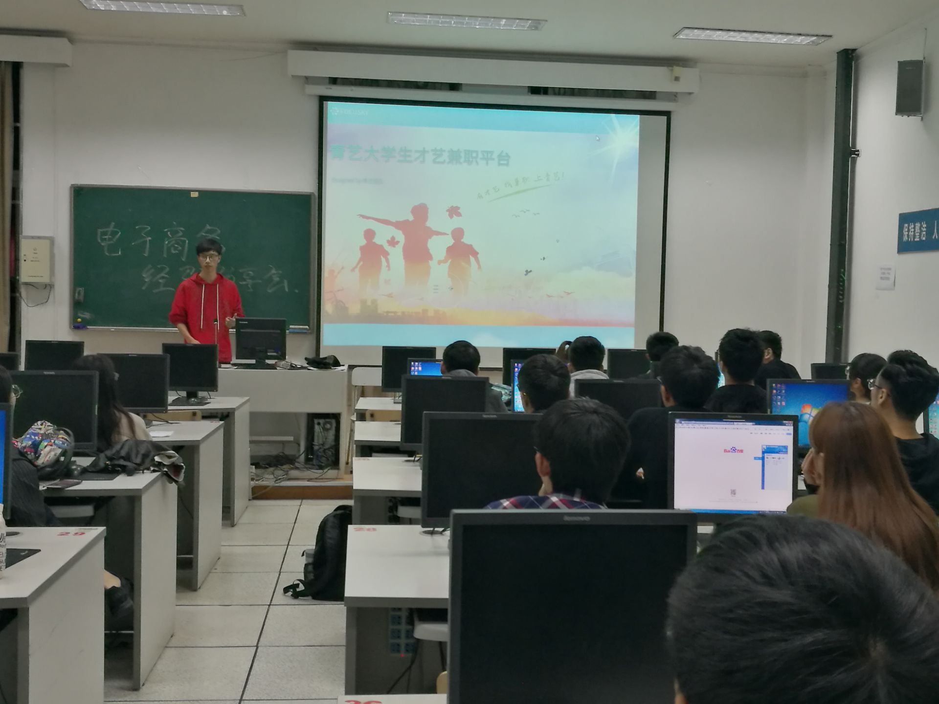 11月15号晚上6点,信息技术应用竞赛基地组织的一场电子商务大赛经验分享交流会在滨文1102举行。