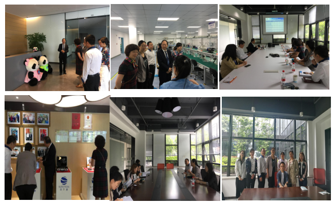 2018年5月11日上午,医学技术公司应航经理、赵洁副书记、李志敏副经理、公司社会合作处员工办陈立兵科长、听力与言语康复学专业执行负责人肖永涛老师以及杨一令老师、苏俊老师一行对诺尔康公司进行了参观。