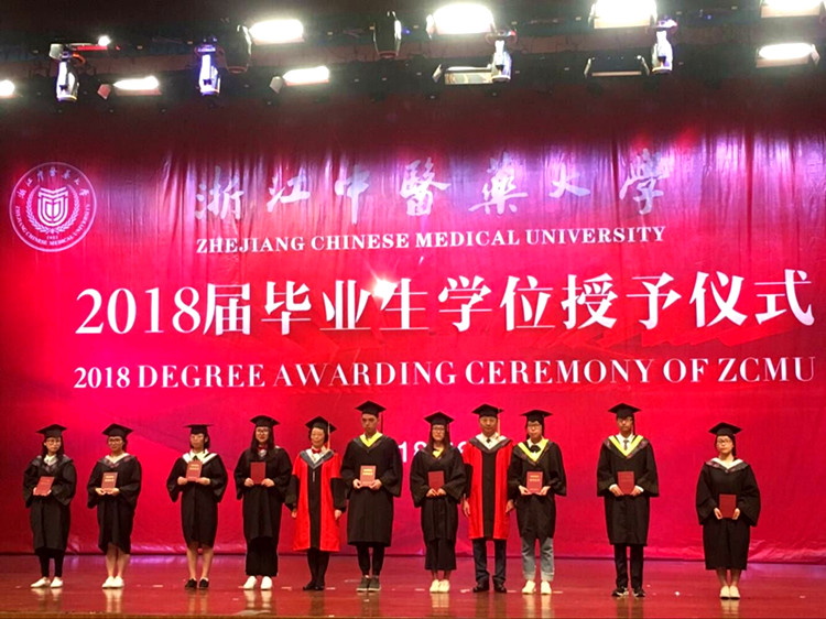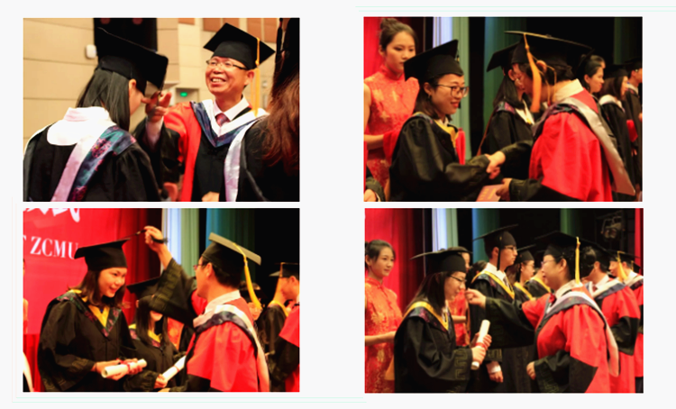伴随着优美的音乐,激动人心的学位授予仪式正式开始,应航、王永华、丁志山、许健、彭建华老师为毕业生依次