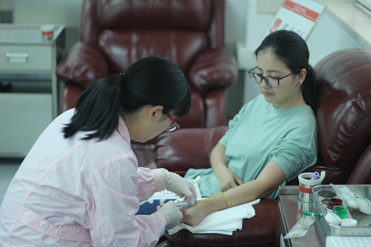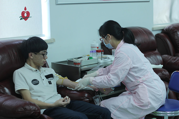 在血液中心二楼血液捐献处,工作人员向志愿者们询问身体状况,并解释了采集造血干细胞的条件。志愿者们填写表格后,医务人员依次从同学们身上抽取6-8毫升血液样本进行分型试验和数据录入。采集后,同学们静坐休息时,工作人员为大家颁发荣誉证书并赠予急救包。期间,一位老奶奶作为工作站的志愿者,为同学们送来茶水。闲谈中,同学们才了解到这位“志愿者”已累计献血超过一万毫升,并坚持志愿服务数年。听了她从事志愿服务的心路历程,同学们深受感动。