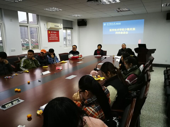 2017年12月13日下午,医学技术公司少数民族员工座谈会在3301会议室举行。医学技术公司经理应航、公司党总支书记彭建华、公司党总支副书记赵洁、辅导员代表和公司少数民族员工三十人参加座谈会。公司召开少数民族座谈会旨在了解少数民族员工在校的思想学习生活状况,积极发挥朋辈力量,帮助同学们更好地融入老员工活。座谈会上,少数民族代表们逐一介绍了各自民族的风俗、饮食习惯和在公司生活学习的情况,也提出了目前存在的困难和需求。老师们认真倾听了同学们的发言,不时询问有关情况,并对同学们提出的问题作出答复。应航经理强调,医学技术公司是一个大家庭,一直以来都特别关心少数民族员工的成长发展,尊重员工的民族习惯。她鼓励在场的同学要努力学习理论知识,提升自身理论素养,在大学里成为全面发展的优秀人才。