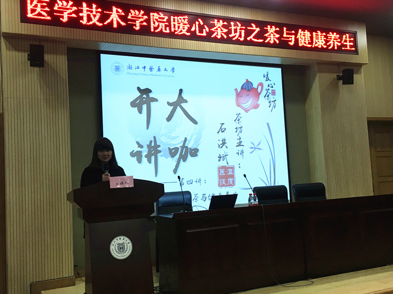 最后,石洪斌教授总结了本次讲座的内容,指出茶不应仅仅只是一种用以解渴的食物,更应把饮茶作为一种生活习惯。健康饮茶,饮茶健康。让茶走进我们的生活,让茶文化在校园中得以传承和创造。