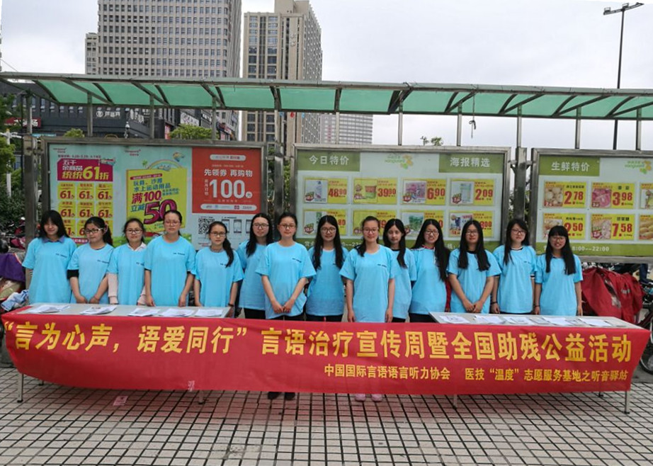 5月22日是全国助残日,由中国国际言语语言听力协会和医学技术公司“温度”志愿服务基地之"听音驿站"共同举办的“言为心声,语爱同行”言语治疗宣传周暨全国助残日公益活动在华润万家正门口举行,为路过的市民普及言语语言治疗知识。