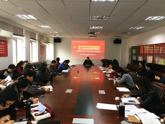 本次学习会由三个专题组成:十九届二中全会精神学习专题、十九届三中全会精神学习专题、中国共产党第十九届中央纪律检查委员会第二次全体会议精神学习专题。彭书记带领全体教职工逐一进行学习,并以理论联系实际,结合校情院情,分享心得感悟,进一步深化教职工们对相关会议精神的认识和理解。