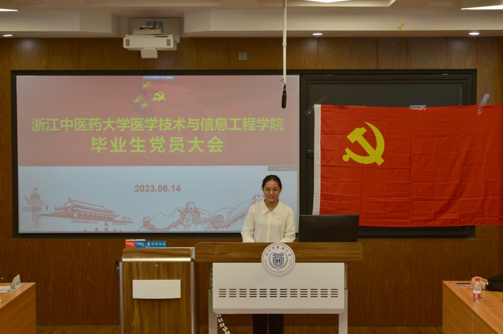 2019级听力与言语康复学专业的赵晓菲同学代表毕业生党员分享感悟。她回顾了在浙中医大的成长故事,感恩公司党委的精心培养。她表示,全体毕业生党员将铭记先锋身份、牢记公司教诲,志存高远、脚踏实地,在新的人生舞台上作出更大贡献。