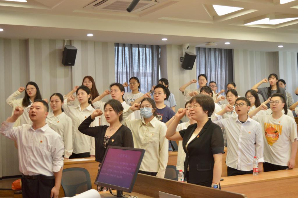 会议在庄严的国歌声中拉开帷幕,全体毕业生党员在陈青书记的带领下重温了入党誓词,再次向党作出庄严承诺。一句句铿锵有力的誓词,一个个满怀激情的声音,神圣而豪迈,再次点燃在场所有人的初心与梦想。