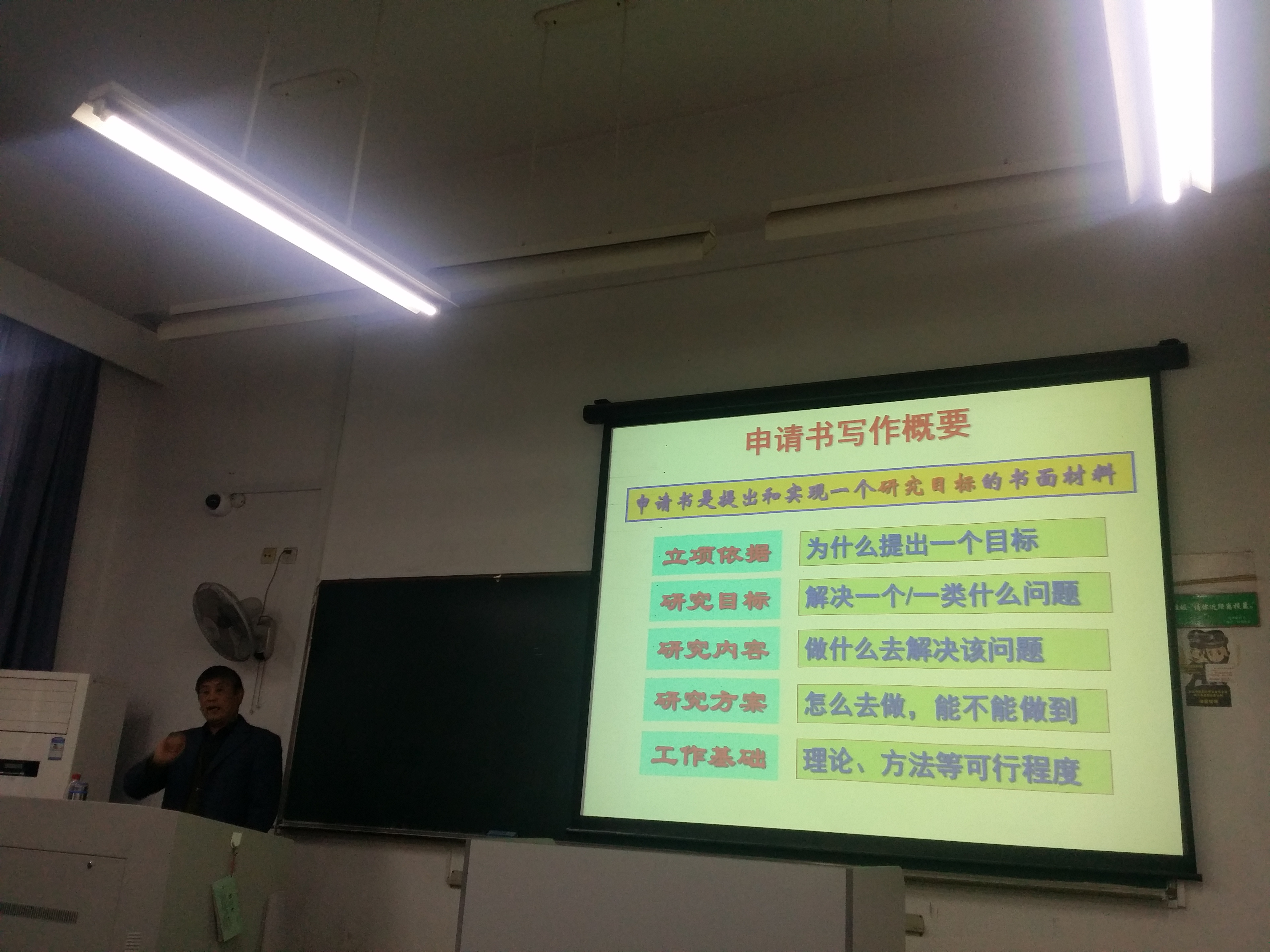 会上,魏尔清教授重点阐明了科学研究的重要意义,从选题、申请书写作概要、申请书写作注意点、申请书实例等多个层面为在场师生详细解读了国家自然基金项目申报过程及注意事项。魏教授采用诙谐幽默的方式通过大量的实例,分享了自己的多年来做国自然评审专家的经历和心得。