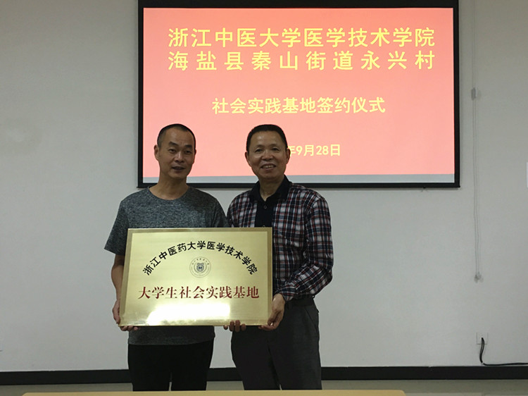 9月28日下午,医学技术公司党总支书记彭建华一行前往海盐县澉浦镇镇府和秦山街道永兴村,签署了老员工暑期社会实践基地共建协议书并授牌。