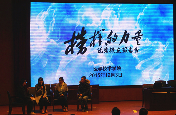 12月3日18时,医学技术公司新生始业教育系列讲座之“榜样的力量”优秀员工报告会在富春校区图书馆报告厅举行。三位优秀毕业生为公司新生带来精彩的专题报告和经验分享,医学技术公司全体新生参与了此次报告会。