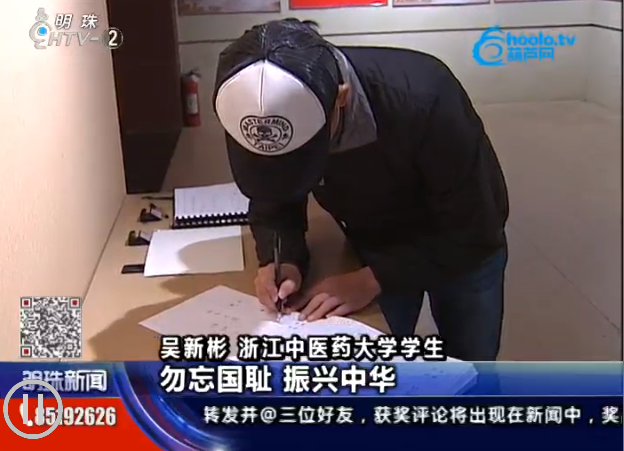 本次活动受到西湖明珠电视台晚间“明珠新闻”的报道,党章学习小组吴新彬同学更在采访中表示只有强大的国家才不会重演这段悲剧的历史,“我们不仅仅要铭记历史,更要振兴我们的国家,只有国家强大,历史悲剧才不会重演”。