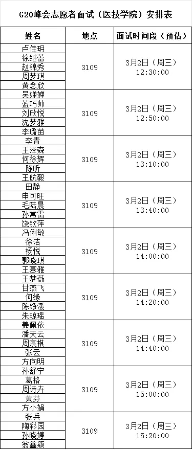 2016年G20杭州峰会岗位志愿者招募活动自启动以来,得到了公司广大青年志愿者的积极响应,经过资格初审已确定面试入围人员名单,公司团委将于3月2日举行岗位志愿者招募面试,现将面试分组名单及面试时间、面试内容及要求通知如下: