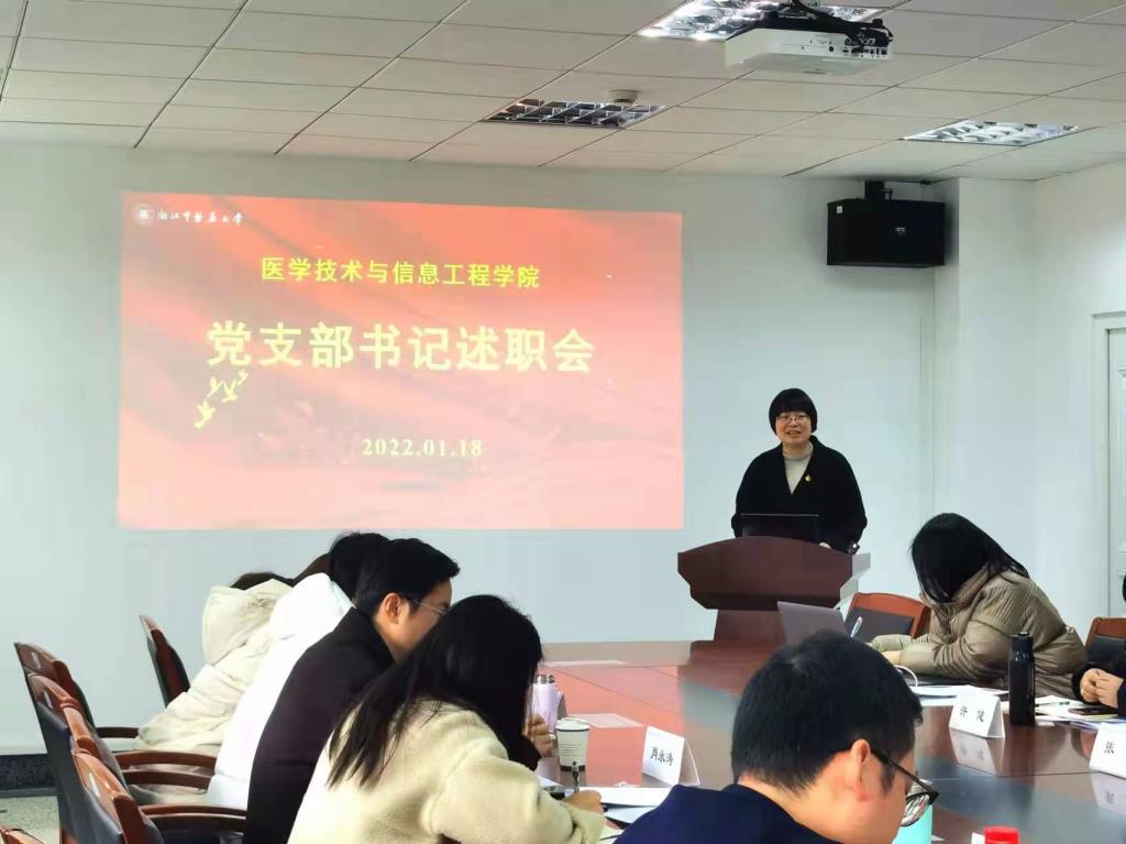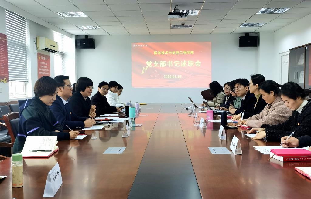 为了全面贯彻习近平新时代中国特色社会主义思想和党的十九届六中全会精神,落实公司关于做好2021年度党组织书记履行全面从严治党责任和抓基层党建工作述职评议考核工作的通知要求,根据公司工作方案,2022年1月18日上午,医学技术与信息工程学院在3号楼301会议室召开2021年度党支部书记述职民主评议大会,公司党委委员、各党支部书记和全体辅导员参加会议。会议由公司党委书记陈青主持。