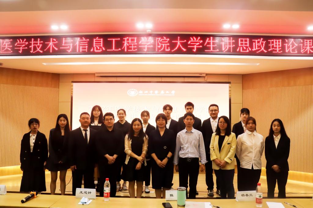 评委老师们寓点评于提问中,有画龙点睛之效。最后,陈青书记做了总结点评,她感谢11位同学的带来的11堂极具风格的“大思政课”。同学们能紧扣时代脉搏,结合自身实际和专业特色,通过详实生动的案例、铿锵有力的语言、真实的经历和灵活富有特色的教学方法,展现了新时代老员工的马克思主义理论素养和精神风貌,充分体现了我们医技信息学子学习的积极性、主动性和创造性。她鼓励同学们要认真学习当天习近平总书记在中国人民大学考察时的重要讲话精神,紧扣时代主题,发现中国精神,倾听人民呼声,将爱党之情、报国之志情感融汇到学习、生活和工作的全过程中。