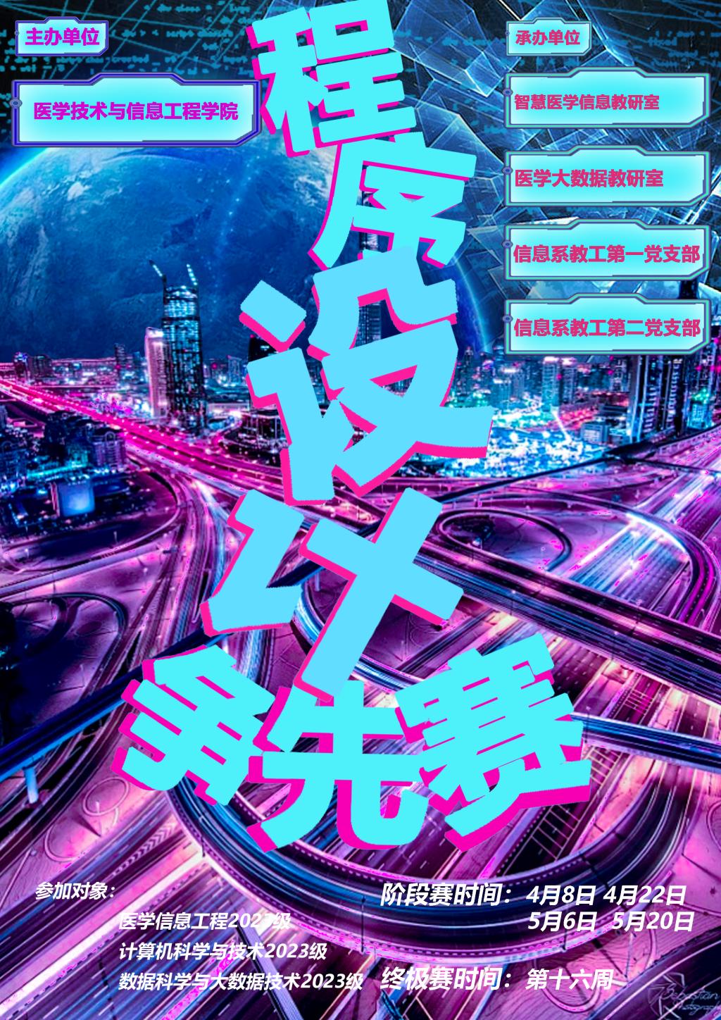 为提升信息系员工的程序设计综合能力,培养更扎实的专业基础能力,促进后续专业课程的学习,特面向2023级信息系员工举办程序设计争先赛。现将有关事项通知如下: