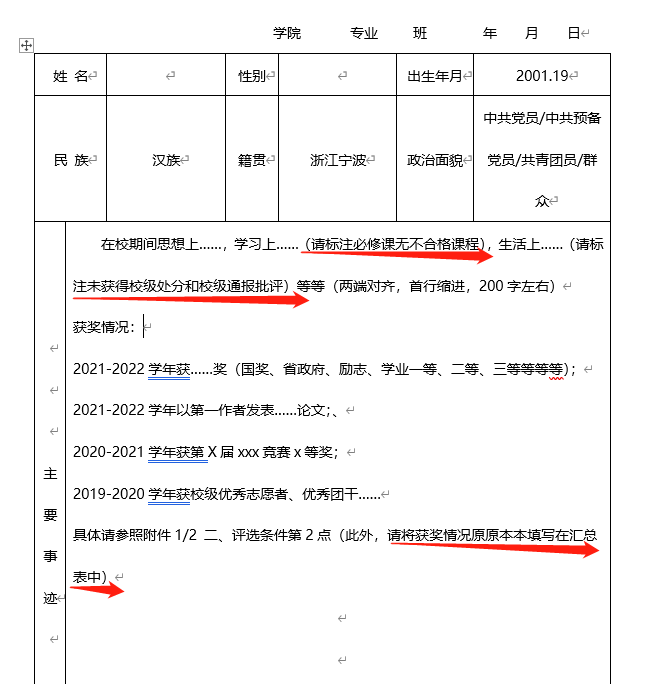 纸质稿一式两份交至各辅导员老师处(注仅限单面一页,不可破表,如有附加材料请另外附页)。