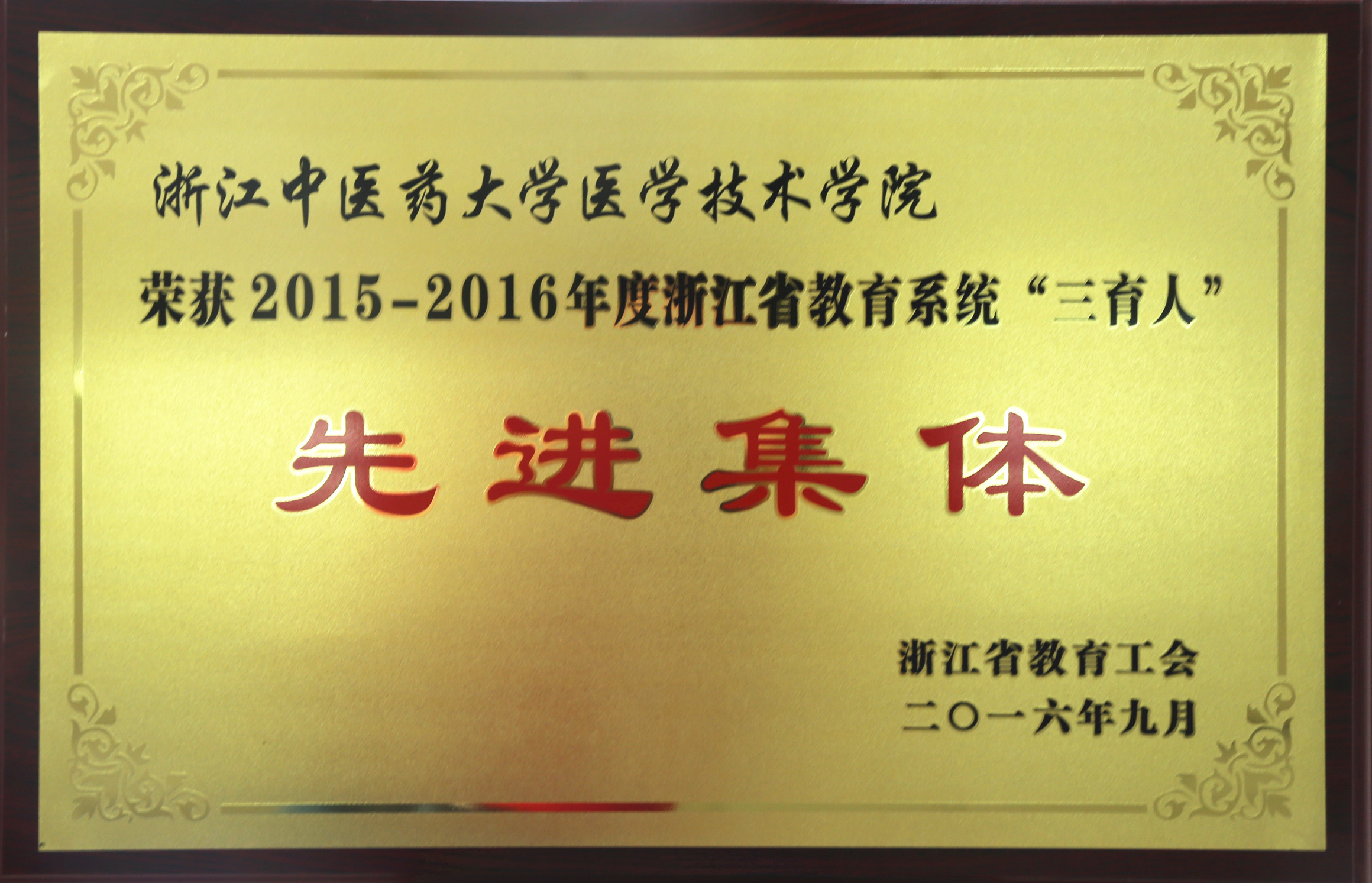 2016年9月8日,浙江省教育工会举行庆祝第32个教师节座谈会,会上对2015-2016年度省教育系统“三育人”先进集体和先进个人进行了表彰。公司医学技术公司获省教育系统“三育人”先进集体称号。