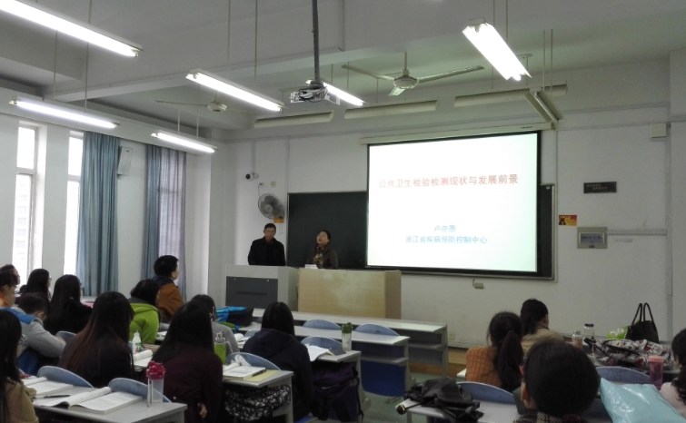 13卫检同学经过两年基础课的学习后,进入了专业课的学习和训练。本学期《免疫学检验》授课接近尾声之际,请到了浙江省公共卫生应急检测重点实验室主任、浙江省卫生检验学科带头人、浙江省疾病预防控制中心首席科学家卢亦愚老师进行课程总结。卢老师给同学们带来了一次与卫生检验工作零距离接触的机会。