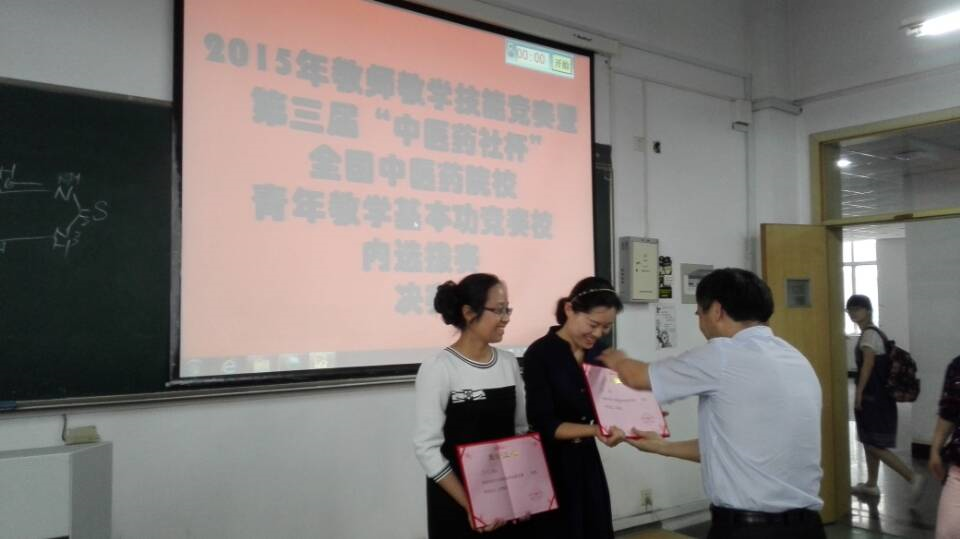 在公司2015年教师教学技能比赛暨第三届“中医药社杯”全国高等中医药院校青年教师教学基本功竞赛中,通过医药组、非医药组共计42位教师的初赛,沈鑫和苏俊老师脱颖而出。5月13日的决赛中依据教学设计文案评审、教学演示和现场答辩三个环节进行评分,经过现场展示评比,沈鑫老师荣获比赛一等奖、苏俊老师荣获三等奖的佳绩。