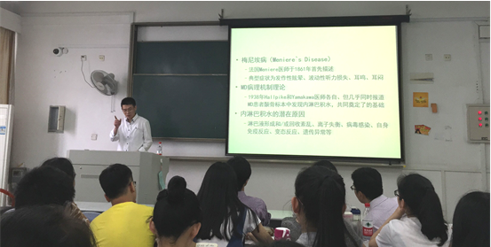 2015年5月15日下午,来自上海交通大学附属第六人民医院一行做客医学技术公司,并做“梅尼埃病及其听力学诊断新进展”专题讲座。医学技术公司领导、听力学教研室老师以及七十余名听力学专业员工聆听了时主任的讲座。