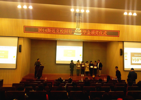 应航经理首先向斯达克中国公司胡晓宇一行的到来表示热烈的欢迎,并希望每位员工能够充分发挥专业优势,展示聪明才智,成为让用人单位满意、公司骄傲的优秀人才。随后,胡晓宇先生借助图文、视频等方式,就斯达克的发展历程、现状、企业文化、社会公益活动等进行系统而全面的介绍,让同学们对斯达克有了更深一步的了解,现场互动环节,气氛活跃而积极。随后,应航经理、胡晓宇先生一起为王玉珏等8名获得斯达克奖学金的同学颁发了奖状和奖金。密西西比大学的伊恩教授紧接着为同学们带来一场题为——“美国的听力学教育”的讲座,并引来了同学们的连番提问,气氛热烈而和谐。