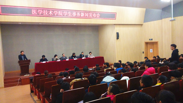 为了充分体现员工在公司的主体地位,尊重员工的知情权和参与权,保证公司工作的公平、公正、公开,12月11日中午12点30分,医学技术公司2014年第一次员工事务新闻发布会在图书馆报告厅举行。医学技术公司经理应航、副经理丁志山、李志敏、党总支副书记赵洁和各系辅导员、教务员及员工代表共170余人出席此次发布会。会议由团委副书记金怡主持。谢书铭老师以新闻发布人的身份就近期公司和公司的重点新闻、工作动态和12月份重点工作向与会同学做发布,涉及内容包括:教学工作、毕业生就业工作、员工科技创新、员工公寓文明建设、党员发展、团学工作等。针对前期公司开展的教学工作座谈会和员工工作座谈会上反映的问题,谢老师代表公司在发布会上进行了反馈。在员工代表自由提问环节,十余位同学提出了与教学、学习、生活等相关的问题,公司相关负责老师一一给予答复,并对未能现场给予解答的问题做了认真记录,表示将在会后提交相关部门。
