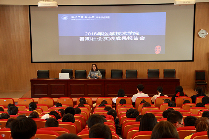 10月17日13点30分,医学技术公司2018年暑假社会实践成果报告会在富春校区B101教室举行。出席本次活动的有院团委书记金怡老师、各社会实践队伍负责人和2018级新生。