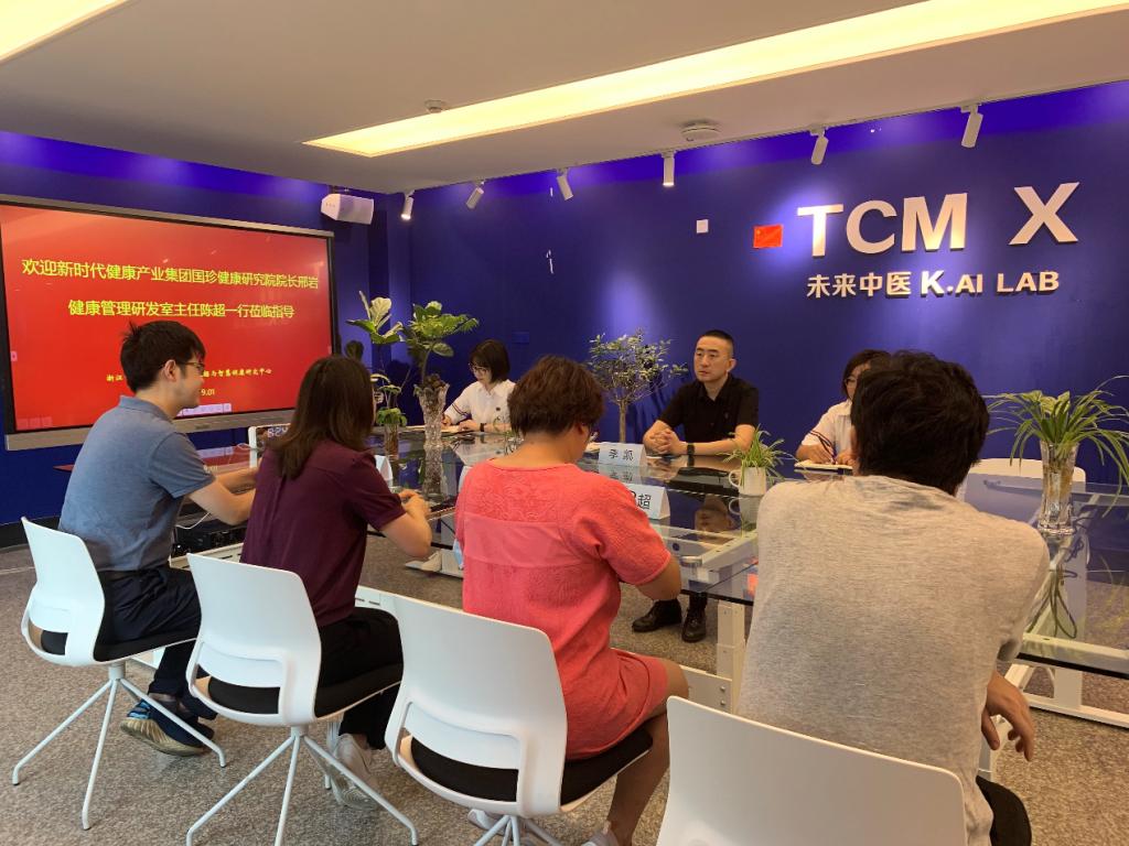 9月1日上午,新时代健康产业集团国珍健康研究院经理邢岩、健康管理研发主任陈超一行莅临公司中医药大数据与智慧健康研究中心进行居家中医健康装备产品研发调研。