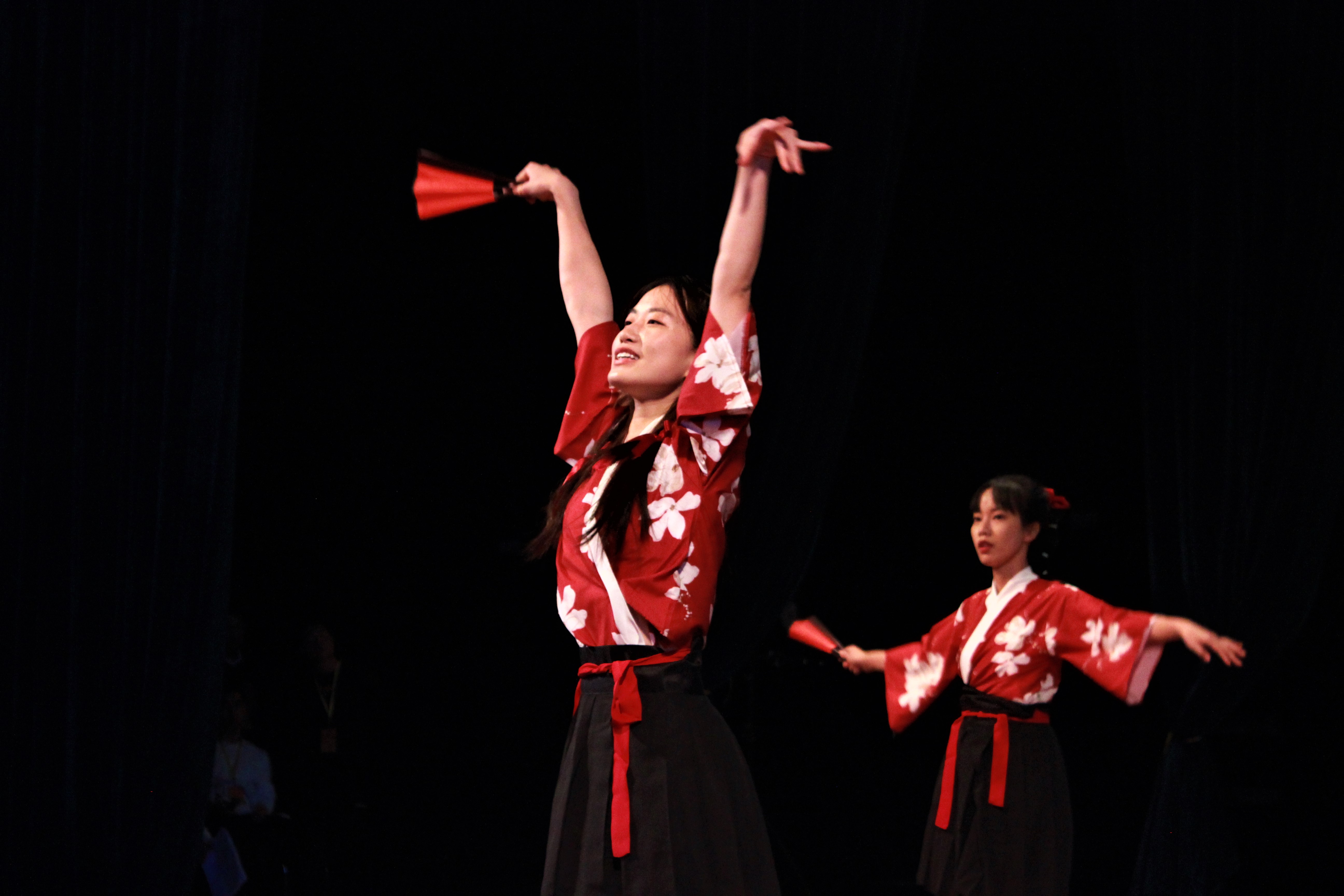 比赛在热舞中拉开帷幕。2020级新生以班级为单位组成代表队依次上台进行表演。各班身着统一服装,精神饱满,在舞台上慷慨激昂地演唱校歌。时而领唱深情献唱,时而队形多样变换,时而摆出各式小道具,形式多样,引人入胜。舞台上,参赛班级同学投入演出,舞台下,观众打着整齐划一的节奏为表演者鼓掌加油,现场氛围温馨而热烈。