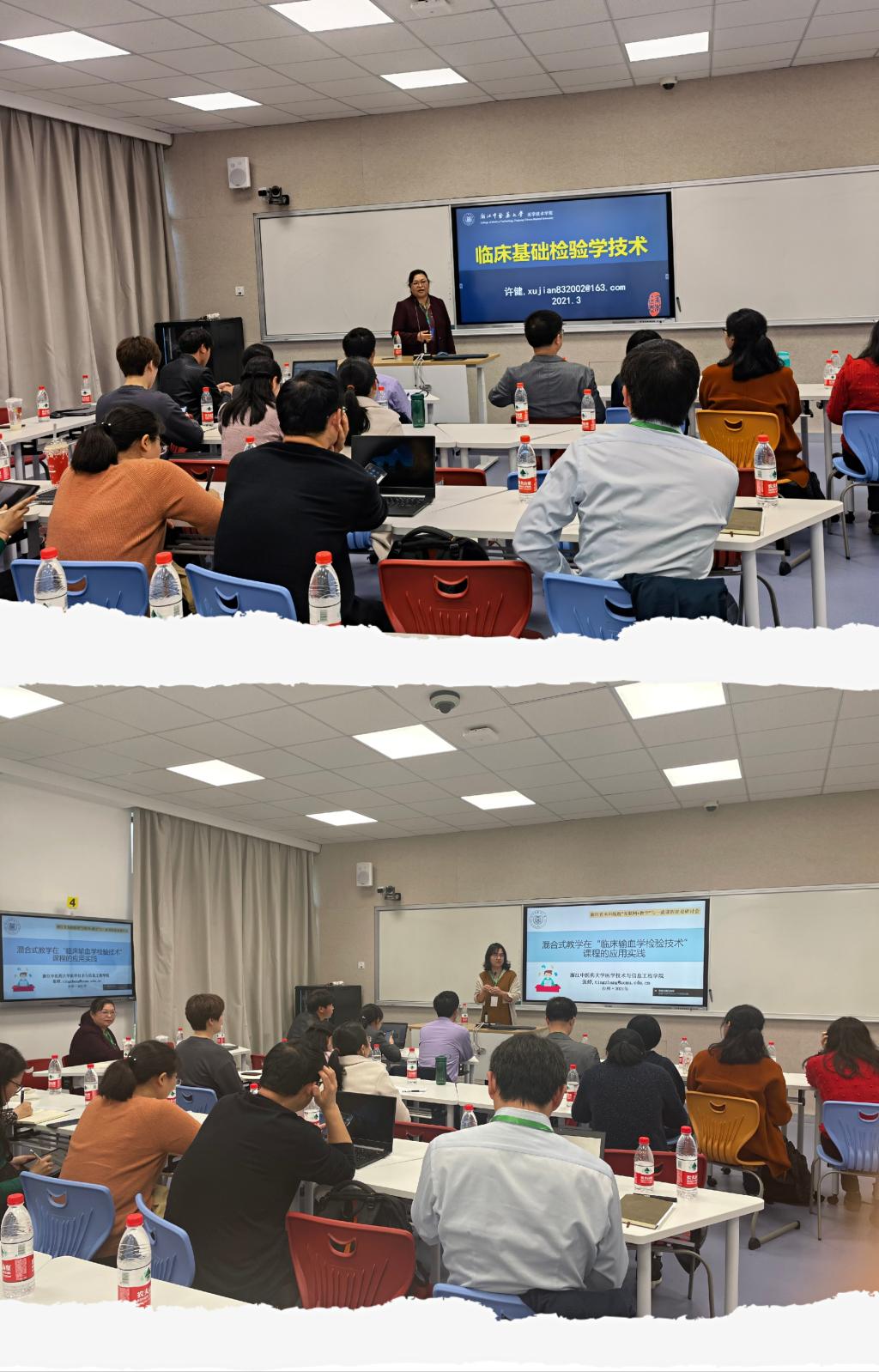 3月27日,浙江省本科高校“互联网+教学”与一流课程建设研讨会在台州公司召开,公司“互联网+教学”优秀案例获得者医学检验技术专业负责人许健教授、教科办主任张婷副教授分别以“临床基础检验学技术课程建设体会”“混合式教学在‘临床输血学检验技术’课程的应用实践”为题交流了课程建设心得。