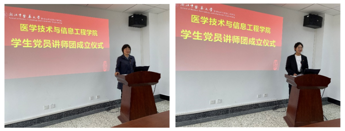 陈青书记为成立仪式致辞。她表示,员工党员讲师团是医技信息公司党史学习教育方案的精品活动之一,公司将聘任正式党员、预备党员和优秀入党积极分子等担任讲师,走进社区、企业、中小学,走进课堂、寝室、生活区,讲述中国故事,宣传先进理论,发出医技信息声音。陈青书记强调,员工党员讲师团的各位成员要立足医技信息各专业学科特色,借助讲师团平台,讲述不同视角中的奋斗中国和奋斗青年,人人争做先进理论传播者。