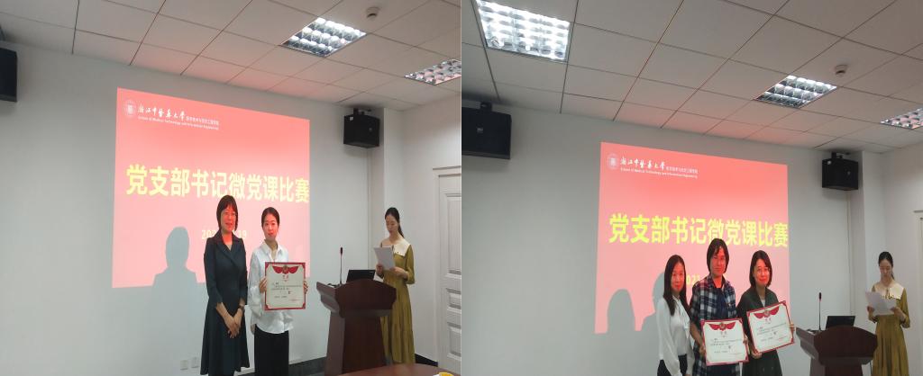 最后,医学信息工程专业本科生党支部书记马颖获得一等奖,检验系教工党支部副书记叶小青、医学检验技术专业本科生党支部书记张婷获得二等奖,研究生党支部书记阮心明、卫生检验与检疫专业本科生党支部书记金丽霞、计算机科学与技术专业本科生党支部书记宋腾蛟获得三等奖,听力系教工党支部副书记田成华、信息系教工党支部书记李懿、听力与言语康复学专业本科生党支部书记毛卫侠获优胜奖。