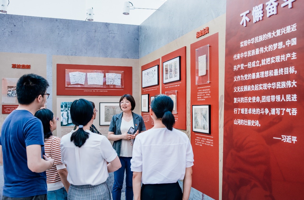 参观过程中,支部成员公司党委书记陈青全程领讲红色档案文化展的五个篇章,在理论探索、理想信念、不懈奋斗、牢记宗旨、自身建设五个方面向教师们详细讲解每份史料的背景和内容。一份份珍贵的史料文献、一张张生动的历史图片、一代代英雄人物事迹、一件件革命先辈的手迹,回顾了中国共产党人探索马克思主义道路的艰辛历程和马克思主义中国化的发展过程,展示了中国共产党为中国人民谋幸福、为中华民族谋复兴的初心和使命。全体教师党员们认真观看,不时驻足凝视、互动交流,从红色历史档案中追寻红色足迹,汲取奋斗力量,切实领悟到作为新一代共产党人应有的担当和使命。