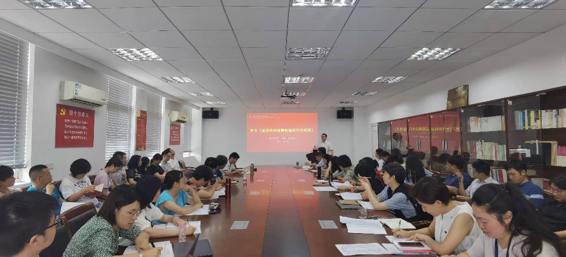 随后,赖小波副经理领学了《医学科研诚信和相关行为规范》。他提到,在开展医学科研工作时,需要时刻保持诚信的态度,坚守道德伦理底线,自觉抵制科研不端行为。
