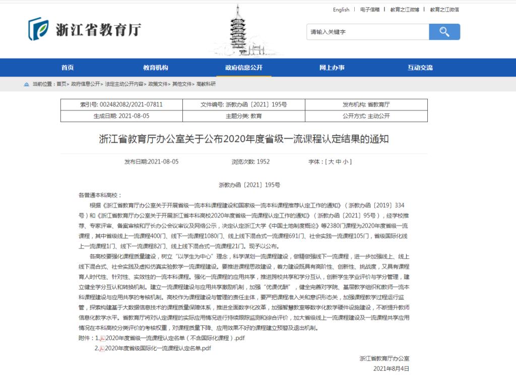 近日,浙江省教育厅发布了《关于公布2020年度省级一流课程认定结果的通知》(浙教办函〔2021〕195号),XCSport共有4门课获得省级一流课程认定。其中,线上一流课程1门,线下一流课程2门,线上线下混合式一流课程1门。