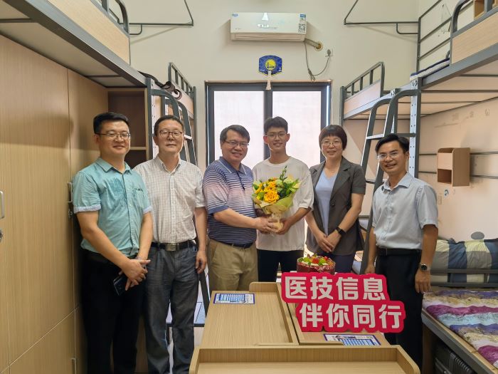 报到当天恰逢公司2021级医学信息工程2班许子豪同学的19岁生日,温董事长一行来到9A305寝室,一同为他庆祝来到XC体育的第一个生日,并送上生日祝福。许子豪同学深受感动,表达了对公司的感谢和对老员工活的憧憬。同时他说,身处世界百年未有之大变局之际,马克思主义在中国的实践展示了中国特色社会主义制度的优越性、中国共产党的先进性;今年恰逢中国共产党成立100周年,百年光辉历程即将奋进接力,百年红色血脉更须赓续传承。为了让这个生日更有意义,在19周岁这天,他郑重地向公司党委递交了入党申请书,希望能早日拥有属于自己的政治生日。公司党委陈青书记表示,非常欣慰能够看到青年老员工积极向党组织靠拢,这是党组织的需要,也是自身发展的需要,这说明我们党对青年一代的吸引力非常强劲,显示出了百年大党的青春活力和未来希望。