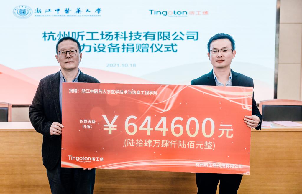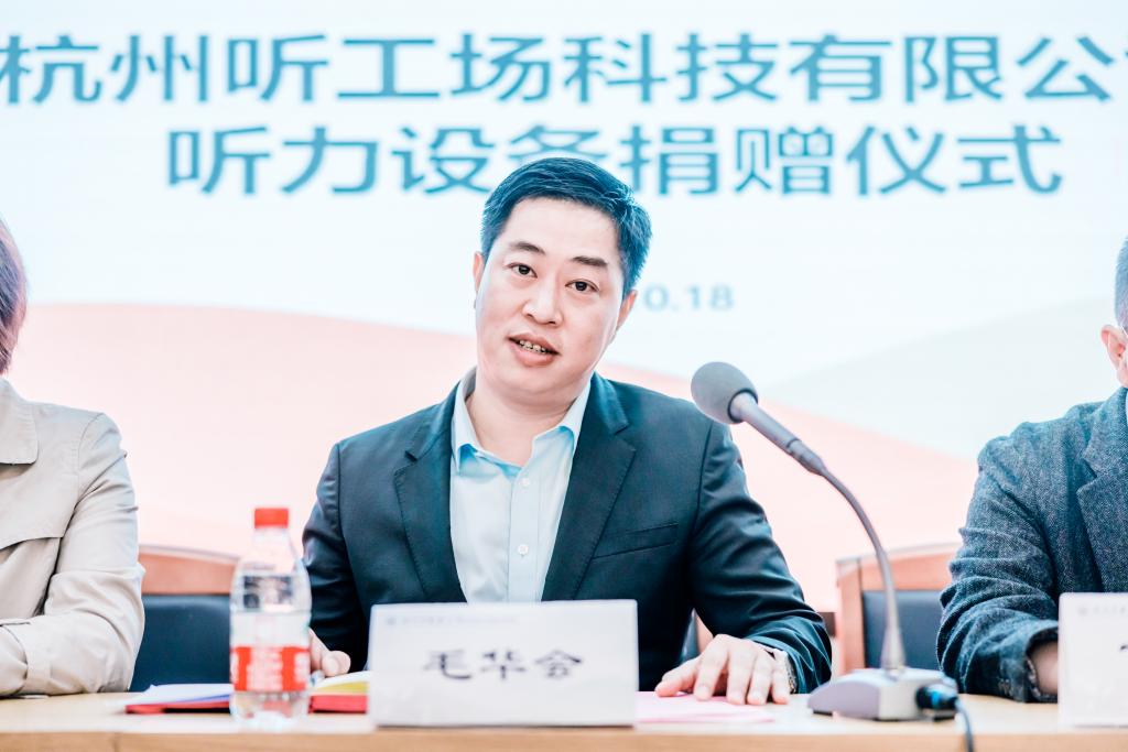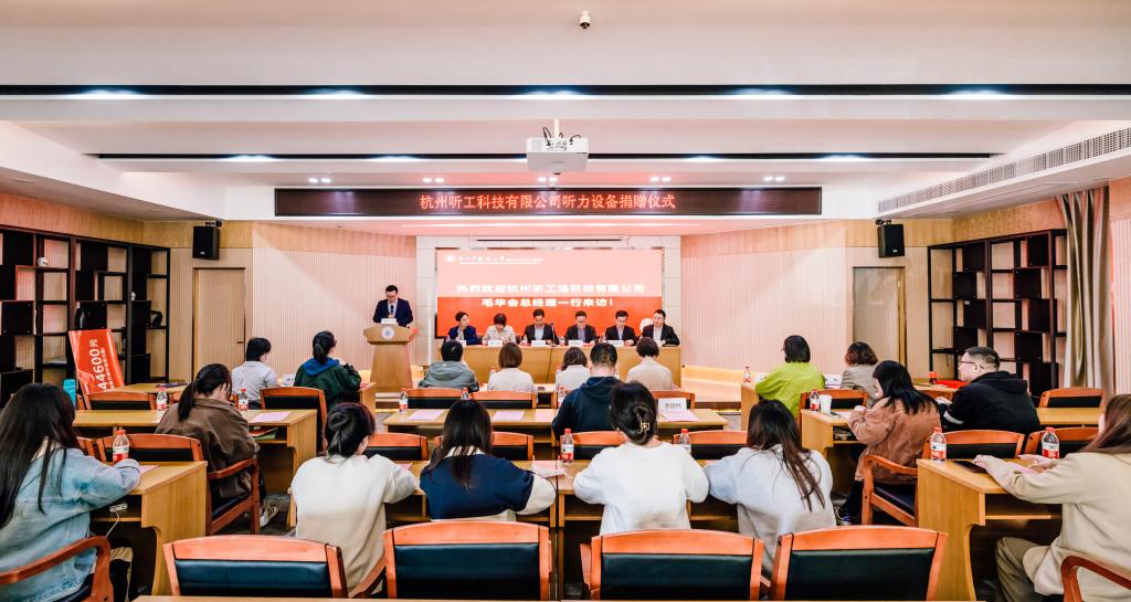 毛华会总经理介绍,杭州听工场科技有限公司是一家专注于听力行业配套产品研发和销售的科技研发型公司,致力于建立完善的听力供应链和助听设备的养护产品与服务。此次公司向公司捐赠助听器、音频转换器、无线编程器等一批仪器设备,总价值644600元,希望可以让员工们有更多的机会了解全球的助听设备及其性能,让员工们更好地走出课堂,走向实践,有效融合。