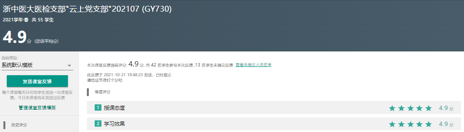 2021年10月21日,公司党委书记陈青在17221教室为医学检验技术专业本科生党支部的全体党员和积极分子上了题为《“四史”学习教育暨学习“七·一”重要讲话精神暨纪念辛亥革命110周年》的专题党课,医学检验技术专业本科生党支部书记张婷主持。为满足实习党员的需求,本次党课通过微助教“云上党支部”开启了同步直播。