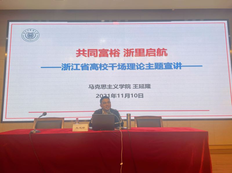 王延隆副教授为学员作题为“共同富裕,浙里启航”的专题讲座。王延隆老师从“什么是共同富裕”、“浙江省为什么能够成为共同富裕示范区”、“浙江率先实现共同富裕的基本原则和有效路径”三个主题为切入点,为入党积极分子描绘了一幅共同富裕,浙里启航的美妙蓝图。他指出共同富裕不仅是社会主义的本质要求,更是中华民族千百年来孜孜以求的梦想。浙江作为开放型经济大省,美丽中国的先行者和示范者,要有领航共同富裕的底气,先行先试、作出示范,为全国推动共同富裕提供省域范例。浙江的高质量发展建设共同富裕示范区工作离不开每一位同学的努力,入党积极分子要共同奋斗,主动接纳,融入发展大局,勇担建设重任,努力做好促进共同富裕的参与者,创造共同富裕的实践者,实现共同富裕的推动者。