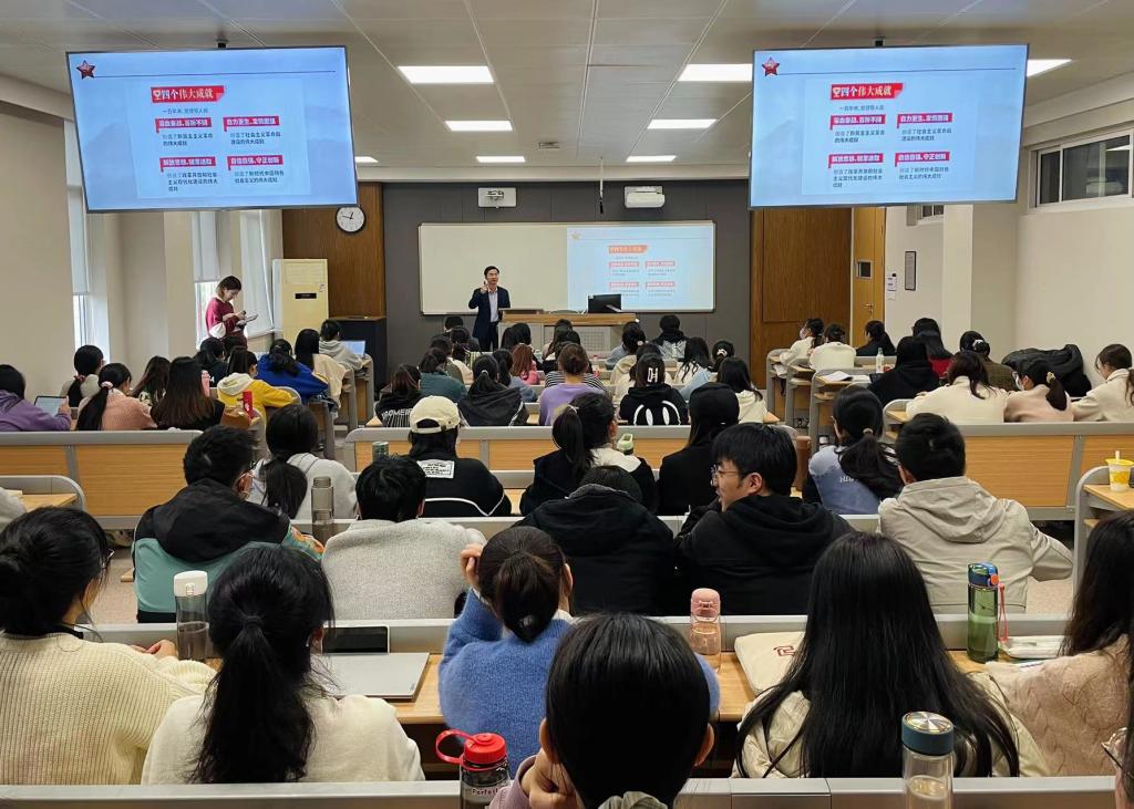 青年最富有朝气、最富有梦想。那么梦想和理想该如何实现呢?肖老师以“机会永远给有准备的人”为引,引导同学们根据自身实际情况,正确处理实习、考研、找工作的关系。他结合往届毕业生的真实案例,用经历和体会阐释了提前规划的重要性。这些贴近专业实际的案例让同学们感同身受、获益匪浅。