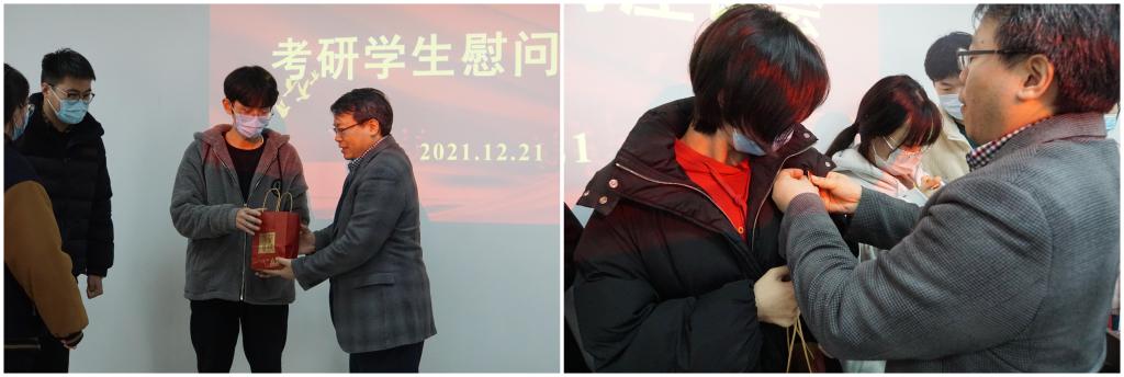 会后,温董事长与员工代表们合影留念,并赠送寄语卡片和“心想事成”大礼包,祝福同学们"一’研’为定,成功上岸"。