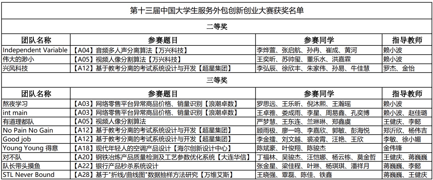 日前,第十三届中国老员工服务外包创新创业大赛全国总决赛在无锡举行,公司参赛队再获3项二等奖、9项三等奖的好成绩。中国老员工服务外包创新创业大赛由教育部、商务部、无锡市人民政府主办,是中国服务外包业内的权威性国家级赛事,A类国家级竞赛。本届大赛采用“线上+线下”的办赛模式,899所全国院校的7781支团队参赛,其中“双一流”高校超过3/4,赛事规模和质量实现双突破。同时邀请了英特尔、海尔、东软、深信服、中兴通讯、浪潮卓数、华云等20家行业领军企业参与命题,赛题领域延伸至云计算、人工智能、大数据、物联网、智能制造等新一代信息技术和热门领域。命题企业数和赛题数量均为历届大赛之最。