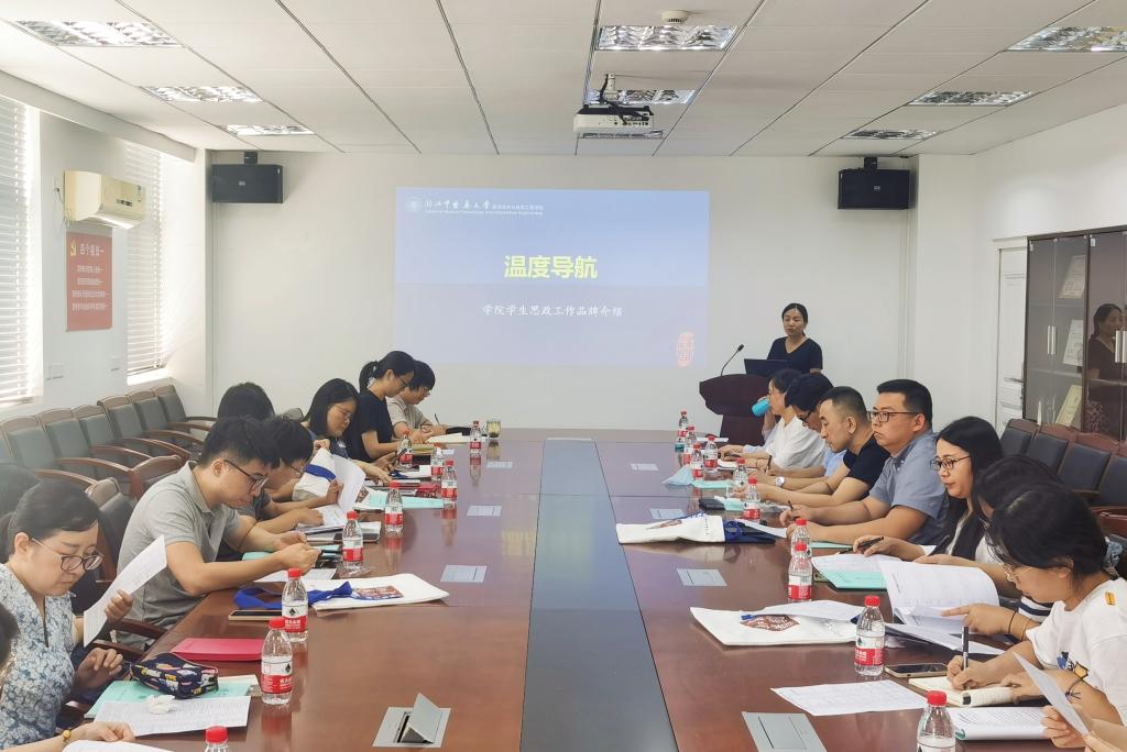 会上,杨春兰书记介绍了公司“一院一品”思想政治教育品牌—“温度导航”,依次从红色思想引领、橙色朋辈互助、蓝色生涯指导、绿色助学筑梦四个创建方向详细阐述了品牌的定位和具体实施方案,并对已开展工作及所获成果进行了总结与汇报。