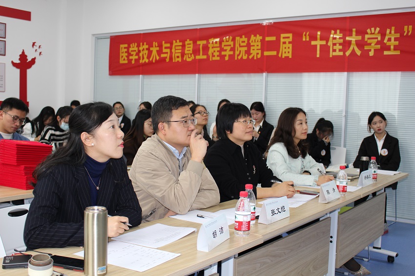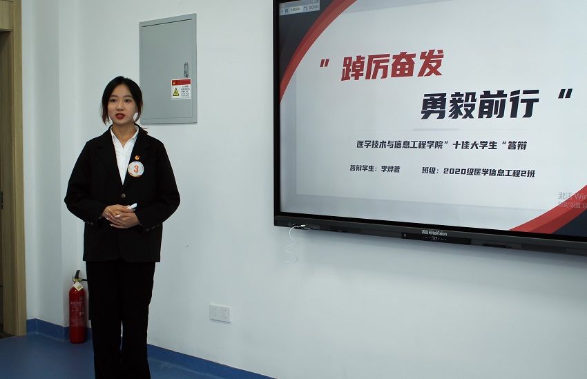 “奋斗”、“担当”与“青春”是整场答辩会的高频词。来自各个班级的20名候选人按抽签顺序以PPT汇报的形式进行为时5分钟的风采展示。全面发展的专业标兵、博学笃行的学术达人、热血澎湃的科研新秀、乐于奉献的员工骨干……二十种青春,不一样的故事,同样的精彩。选手们用最真诚的语言讲述最青春、最明亮、最温暖的成人成才故事。