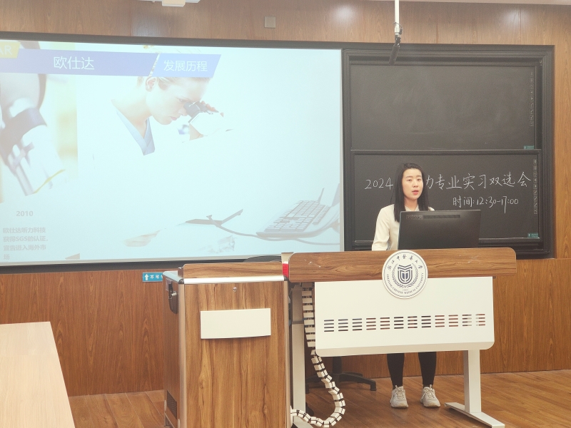 本次双选会邀请到天津市第一中心医院等3家医院和杭州惠耳听力技术设备有限公司等6家企业参会,提供57个实习岗位,全方位覆盖听力检测、助听器验配、产品运营、研发、销售等听力行业方向。会上,9家用人单位依次进行宣讲,为参会同学全面讲解听力行业现状和发展前景;根据医院、企业的不同招聘岗位,详细介绍用人需求,争取做到人岗匹配;对于同学们关心的实习补贴、工作环境、就业机会、晋升渠道也一一作了解答。会后,用人单位与员工面对面就实习咨询、投递简历和签订实习意向等问题进行更深入交流,双选会现场氛围热烈。
