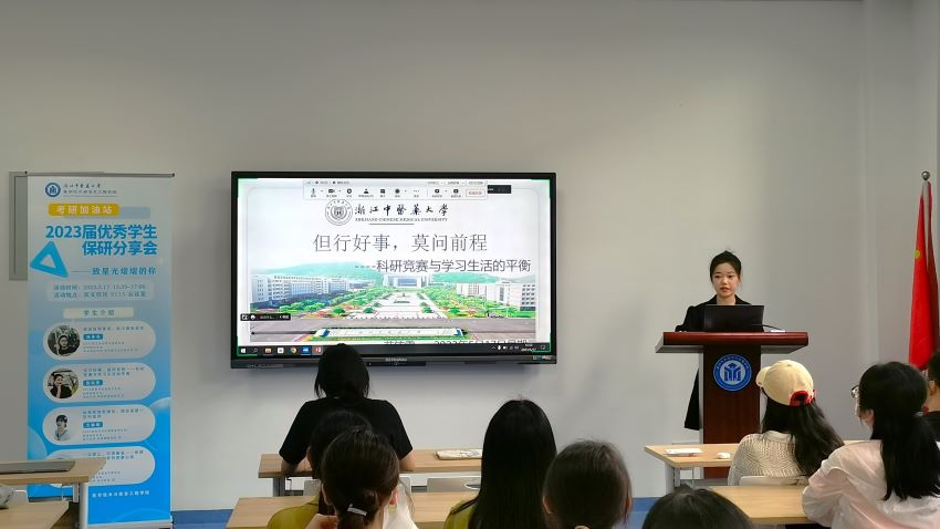 分享会邀请公司2019级医学检验技术专业茹铉雯、卫生检疫与检疫专业林冬冬、听力与言语康复学专业兰琳琳、医学信息工程专业董乐水等四位成功保研的优秀学长学姐做线下分享,他们分别从保研的流程与细节、科研竞赛与学习生活的平衡、保研方向与本科专业的结合、经验分享与学科竞赛心得等不同角度向学弟学妹们倾囊相授,分享自身的成长经历和学习心路。分享会现场气氛热烈,同学们就科研竞赛、文章发表、学习方法等问题和分享嘉宾积极探讨。