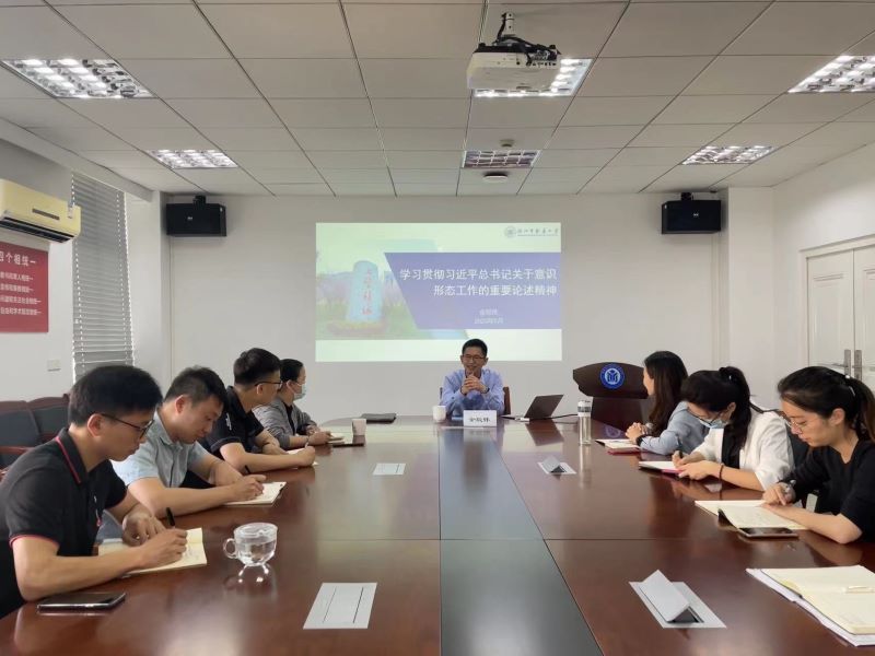 金聪伟副部长以三个如何入题,暨如何正确认识意识形态,如何把握当前高校意识形态工作面临的风险与挑战,如何牢牢守住高校意识形态阵地,用提问互动的方式激发全体参会人员主动思考,深入了解意识形态工作的重要意义。他指出,工作中要坚持马克思主义在意识形态领域的指导地位,明确高校文化前进的方向,落实立德树人工作要求,自觉提升政治素质。同时要总揽国内国外意识形态斗争最新变化,瞄准高校意识形态工作难点、痛点、堵点,走到斗争工作的前沿去、中心去,充分运用马克思主义系统观、实践观指导高校意识形态工作。