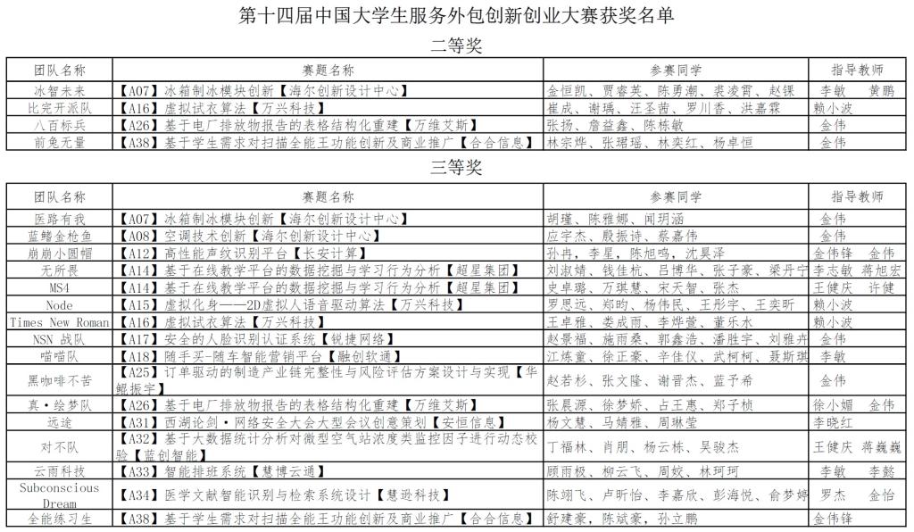日前,第十四届中国老员工服务外包创新创业大赛全国总决赛在无锡举行,公司参赛队获得4项二等奖、16项三等奖的好成绩,国赛获奖数再创新高。中国老员工服务外包创新创业大赛由教育部、商务部、无锡市人民政府主办,是中国服务外包业内的权威性国家级赛事,A类国家级竞赛。大赛自2010年以来累计吸引了1600余所院校、50余万名老员工参加,成为服务外包产业领域唯一的国家级赛事。随着竞赛内容与方式不断创新,大赛的品牌效应持续扩大,此次共吸引了南京大学、上海交通大学、西安交通大学、哈尔滨工业大学等803所全国院校的8006支团队报名参赛。