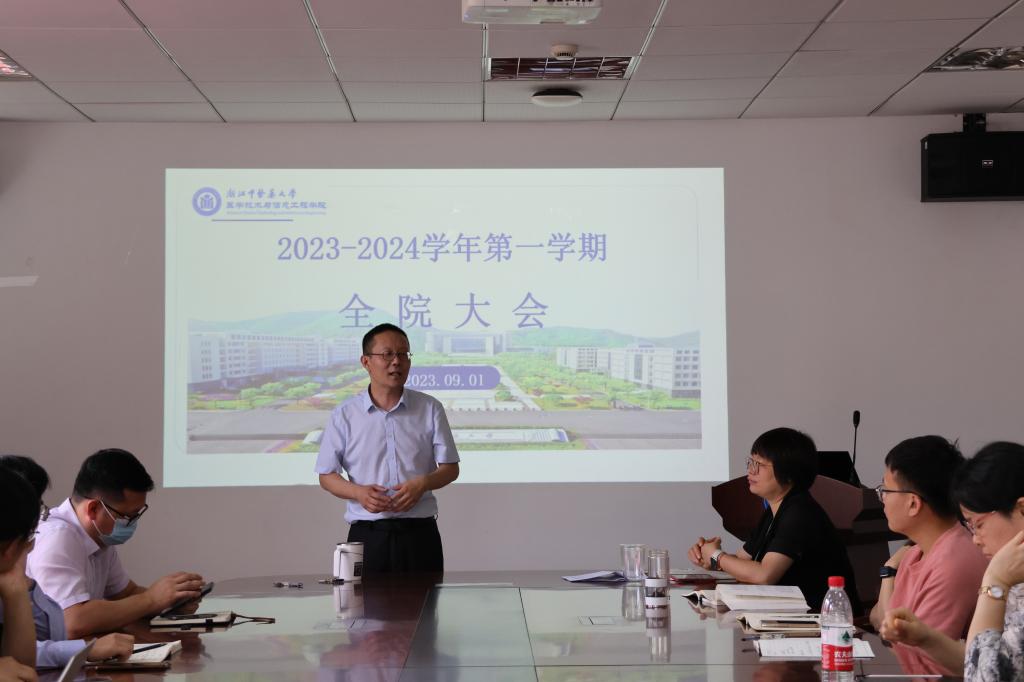 公司党委书记陈青公司感谢全院教职工秉持“博雅达观,踔厉创新”的院训,齐心协力,奋发进取,在上半年取得了“国家教学成果二等奖”“浙江省高校黄大年式教师团队”“2023年浙江省师德楷模”等突破性成绩,公司党委通过第二批“全省党建工作标杆院系”验收,通报了公司党委班子关于学习贯彻习近平新时代中国特色社会主义思想主题教育专题民主生活会召开情况。她介绍了新学期的党建工作要点,要紧扣工作主线,宣传贯彻党的二十大精神、省十五届三中全会精神、省高等教育强省会议精神,全面加强党的政治建设;强化基层组织建设,深入构建高质量党建工作体系;聚焦立德树人,全面提升“三全育人”;树立底线思维,加强作风建设,推进校风建设做好网络安全、迎亚运安全保障。号召全体老师要继续保持奔跑的姿态,为梦想而奔赴,奋力续写医技信息公司的新篇章,在公司争创一流中医药大学中做出更大贡献!
