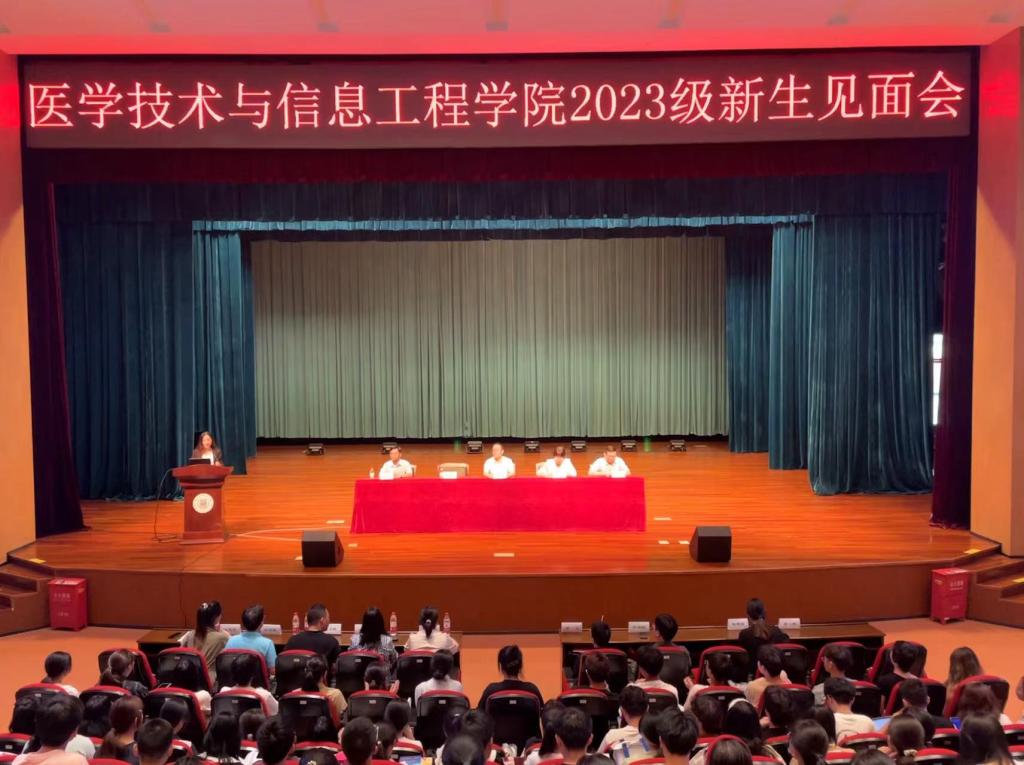 见面会在庄严的国歌中拉开帷幕,596名医技信息新生青春的面庞洋溢着中国自信。公司经理丁志山代表公司党政领导班子热烈欢迎2023级全体新生的到来,并为新生讲授了一堂精彩纷呈的“经理第一课”。作为公司大家长,丁经理为同学们详细介绍了公司的发展历程、办学特色,深情回顾了公司成立以来取得的优异成绩。同时寄语新同学:要树立正确的人生目标、要有担当精神、要多途径全方位锻炼自己,传承好“博雅达观,踔厉创新”的院训,争做“胸中有大志、头脑有智慧、心中有热血、身体有活力”的四有好青年,为自己的青春负责,为自己的未来奠基,为国家的未来奋斗!