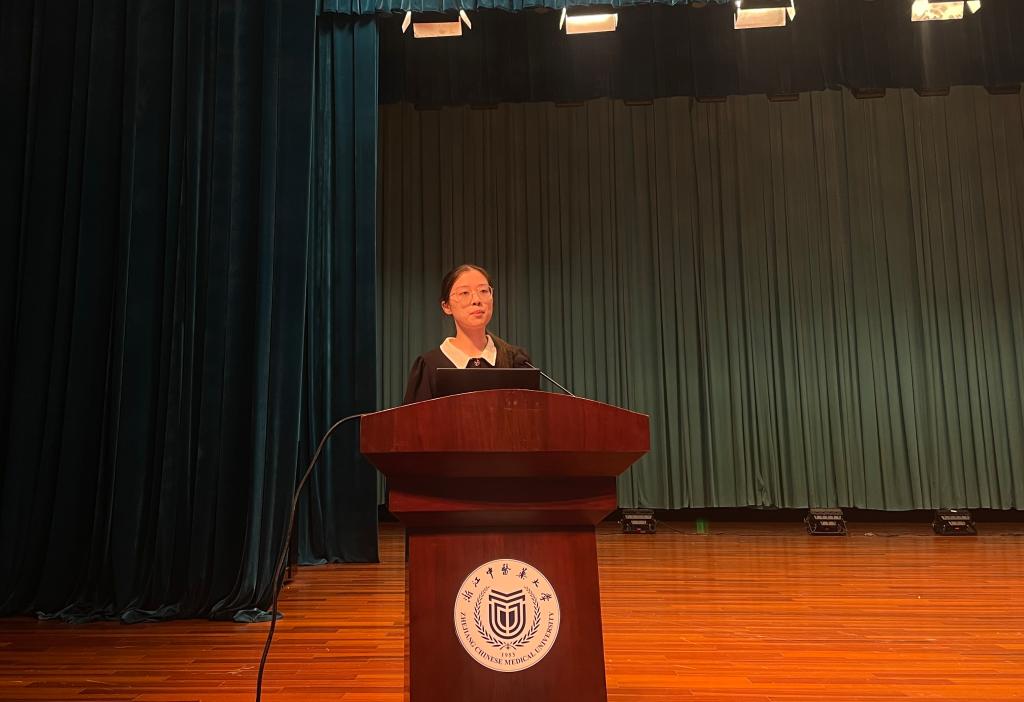 新生代表2023级卫生检验与检疫1班王嘉悦分享了启航大学之路的喜悦之情,她认为当今社会对于医学技术和信息工程有迫切的需求,她将以“求本远志”的校训严格要求自己,努力践行公司博学睿思、明辨笃行的学风,助力公司、公司事业发展,让更多的人看到浙中医大、让更多的人认识温度医技。